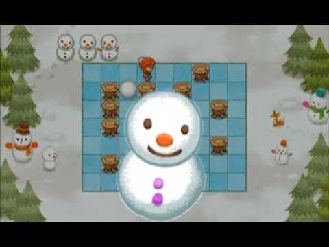 Touch the arrow buttons to move the girl arround, pushing snowballs as she goes.